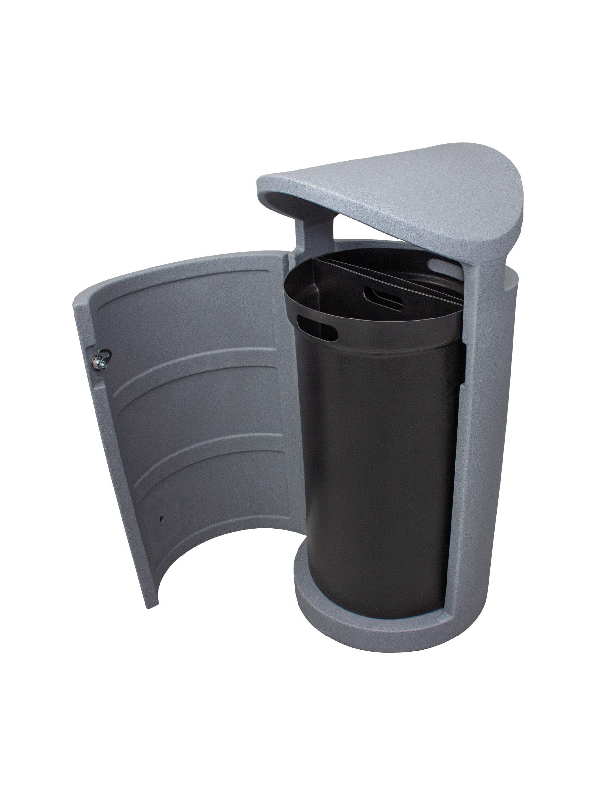The Euro is a modern European inspired container that will change the look of outdoor waste collection. This extremely durable container offers a built-in canopy and curved design, which not only protects from rain and precipitation, but emphasizes its high-end artistic appearance. With the option of one or two streams, lockability, and easy ground mounting, this container is the perfect fit for any outdoor setting.