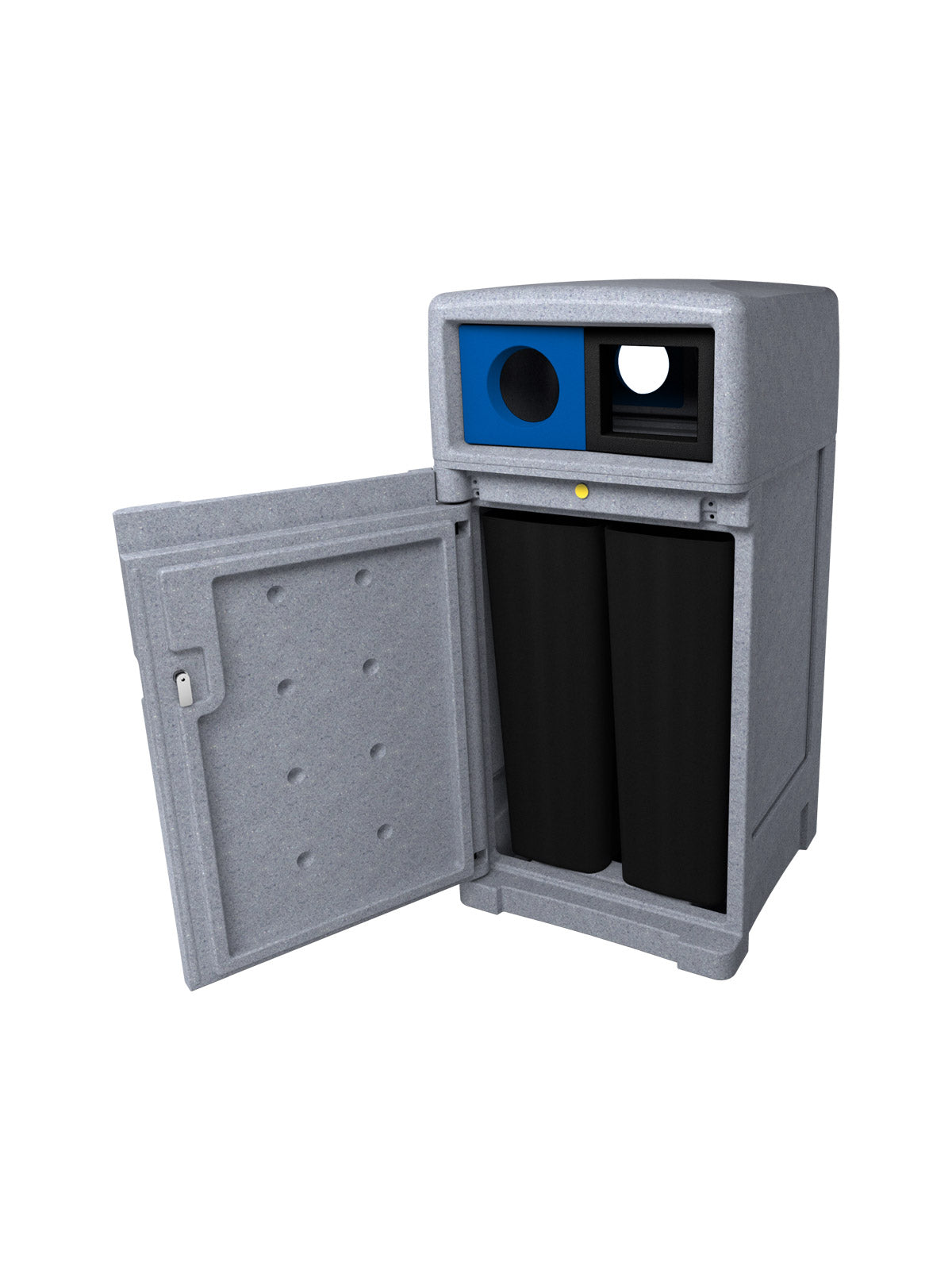 The Expression™ is the only molded plastic container that effectively prioritizes signage! All four sides have space for customized signage, allowing you to differentiate streams or advertise your business. Made from double-wall plastic with a canopy lid that protects the contents from precipitation, this sturdy container is built to outlast any type of weather. Its simple yet sophisticated appearance is unique and fits perfectly into any outdoor space while adapting to the needs of your program.